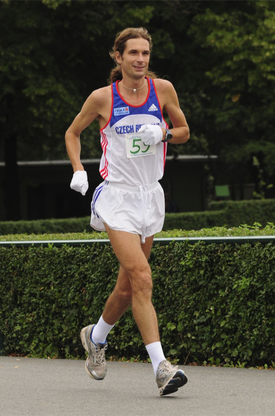 O ultramaratonu moc nevím, proto mě překvapuje, že se běží celkem pomalu. A i těch několik reprezentantů se nikam nežene. Jako nováček se pokorně zapojím do kroužení kolem areálu Sletiště a nechávám se zcela pohltit atmosférou. A již v prvním svém úseku se stane něco neuvěřitelného. Dobíhám vysokého pána s culíkem a v bílém triku s nápisem Czech Republic. Omluvím se, že jsem jen štafeta a s údivem i s lesklýma očima pokračuji dále. Dana Orálka znám samozřejmě z mnoha rozhovorů a ze startů mnoha závodů, ale že bych jej někdy na trati předbíhal…